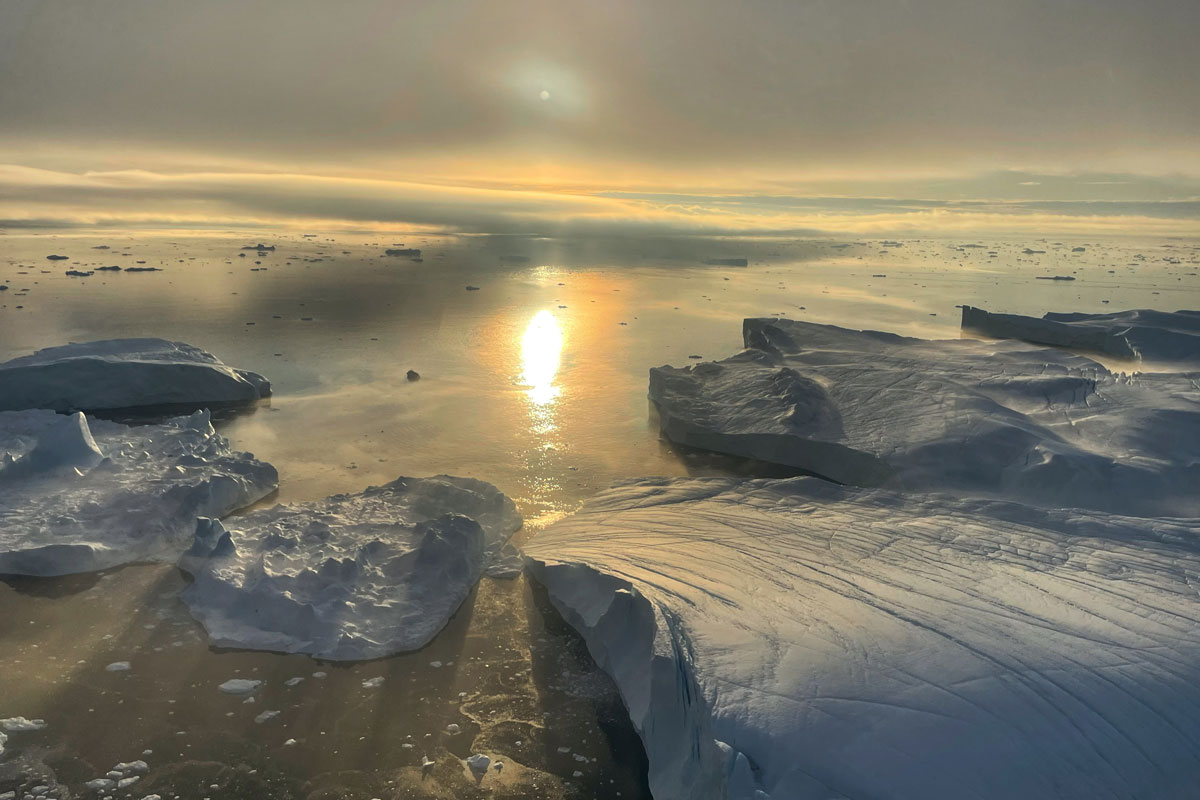 Your journey begins northeast toward the Sermeq Avannarleq glacier, followed by an awe-inspiring flyover of Sermeq Kujalleq Glacier — the largest producer of icebergs in the Northern Hemisphere.