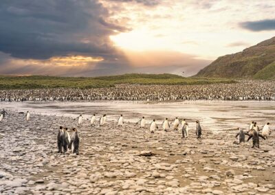 This is our most extensive, most richly varied, most epic journey. As if that weren’t enough reason to celebrate, it takes place over New Year’s Eve! Join us as we immerse ourselves in the rich history of the Falklands, step onto the rugged terrain and cliff-lined coast of South Georgia, and feast our eyes on beaches covered in fur seals, elephant seals, and hundreds of thousands of penguins, in one of the most jaw-dropping nature scenes you will ever witness. We’ll have ample time to explore the fascinating history of the area, dating back to the grandiose times of the ‘Heroic Age of Antarctic Exploration’ of the late 1800s and early 1900s, before heading to the Antarctic Peninsula, to be greeted by glorious icebergs and glaciers, an array of penguin species, and likely whale encounters. On New Year’s Eve, a toast to our great fortune in sharing such an unforgettable moment in this magnificent place will be another highlight. The final act awaits as we attempt to reach 66°33’S and cross the Antarctic Circle, where we’ll raise a glass to our great fortune and this magnificent continent, before heading home, knowing we’ve truly done it all.