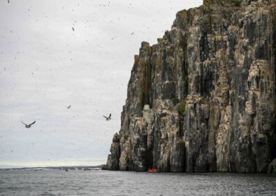 From Svalbard, we sail toward Jan Mayen, an isolated island crowned by Mt Beerenburg, the world’s northernmost volcano, where fulmars, kittiwakes, and gulls throng the black volcanic cliffs. Ocean Albatros then continues to East Greenland, visiting the fascinating and friendly settlement of Ittoqqortoormiit before heading into Scoresbysund – Earth’s largest fjord system. With immense glaciers, blooming tundra, and mountains rising straight out of the icy sea, Scoresbysund is undoubtedly one of the most spectacular locations anywhere in the Arctic.