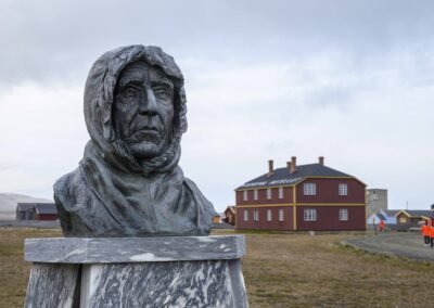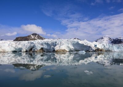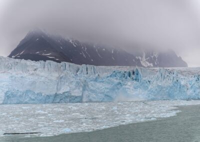 During the Arctic “night,” we sail past Prins Karls Forland to the stunning Kongsfjord, framed by glaciers and the dramatic Three Crowns mountains. The first stop is Ny-Ålesund, Earth’s northernmost settlement, known for its scientific stations and historic role as a base for legendary polar explorers like Amundsen and Nansen. This remote outpost continues to support vital research amid its breathtaking surroundings.