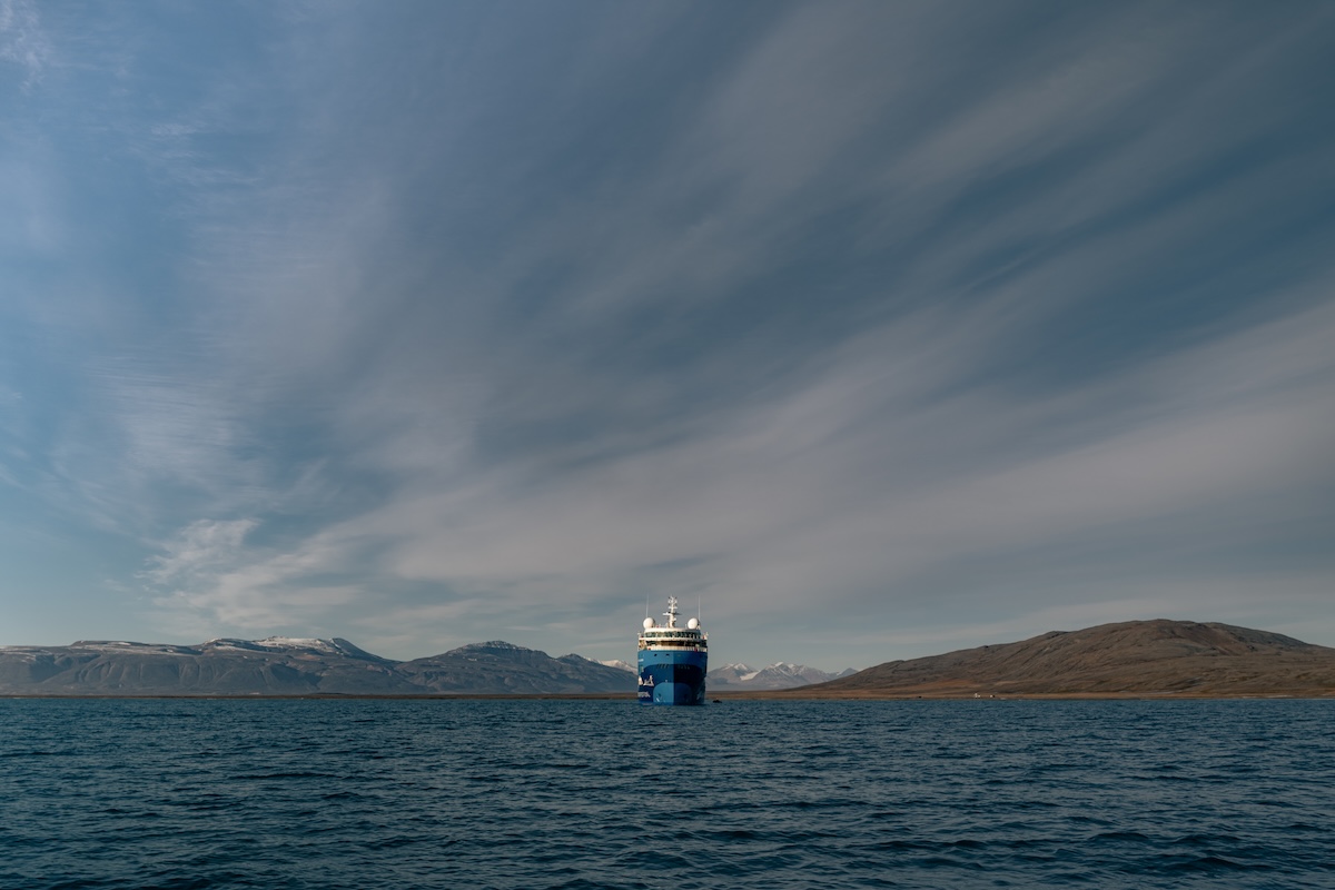 Due to the extreme remoteness and unpredictable Arctic conditions, the itinerary within the park is flexible and dictated by weather, wind, sea, and ice. The Captain and Expedition Leader determine daily plans, which are announced the evening before. Potential highlights include Ella Island’s dramatic 1300-meter cliffs at Bastionen, the historically significant Maria Island — site of a German WWII camp — and Blomsterbugten on Ymer Island, where visitors may enjoy views of the striking Teufelsschloss mountain and its vivid geological layers. Other possible destinations include the calving Waltershausen Glacier, the magnificent Moskusokse Fjord, and the wildlife hotspots of Jameson Land.