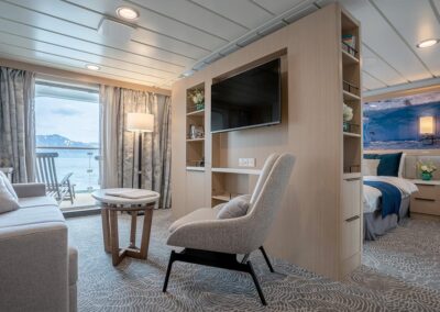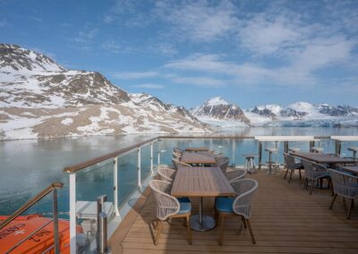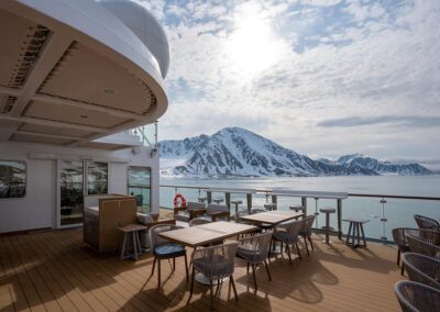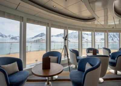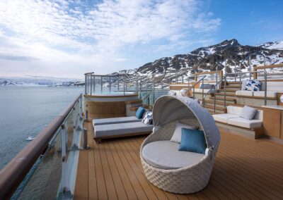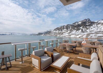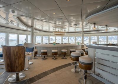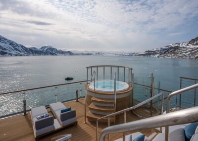 The Ocean Albatros is designed to keep the Polar regions front and center, from wake-up to lights out. Every stateroom provides a generous view, and most include private balconies. A variety of observation decks are accessible from multiple indoor spaces. Two hydraulic platforms can be lowered to offer unprecedented near-water-level views – and rare photograph opportunities. Even the two outdoor Jacuzzis provide 360 views of the mesmerizing landscape that surrounds you.