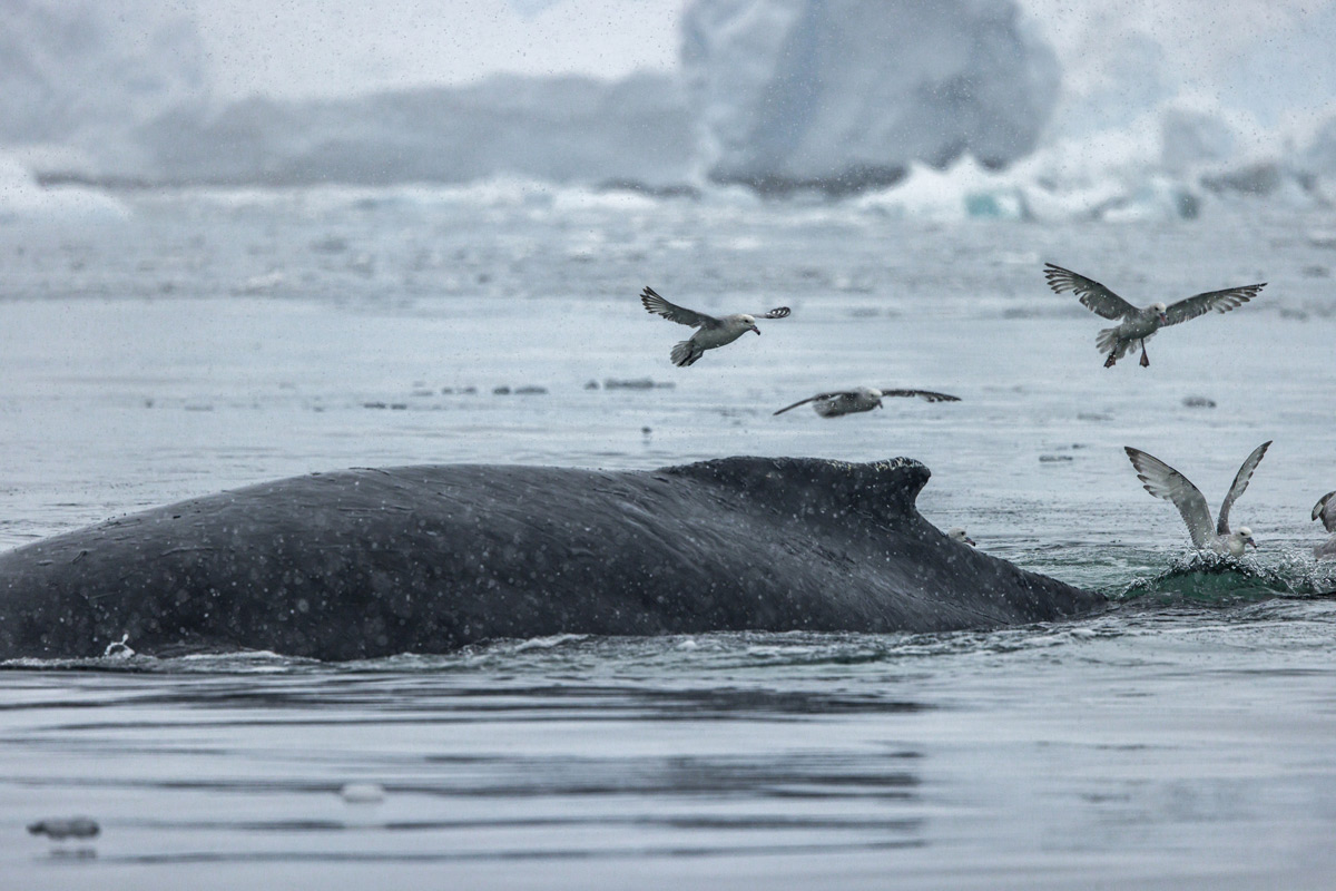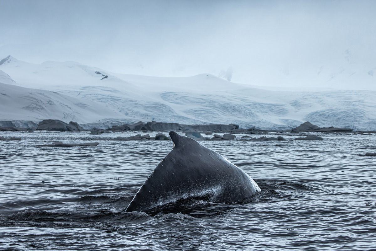 Here’s a helpful tip for our guests: the ideal months to spot these giants are February and March, when whale sightings are at their peak. If you’re interested in a closer encounter, be sure to hop onto our daily Zodiac tours or even better – sign up for Kayaking, where you might encounter these amazing animals at water level (yes, it’s perfectly safe!). They are curious animals that also like to have a little fun. You might see them breaching (leaping out of the water, and sometimes twisting before smashing back down), spyhopping (poking their heads out of the water to have a look at what’s around), diving (cruising along the surface then diving deep, with the giant fluke then lifting above the surface) or lobtailing (slapping their flukes against the water to create noise). These ‘shows’ are the perfect photography opportunity.